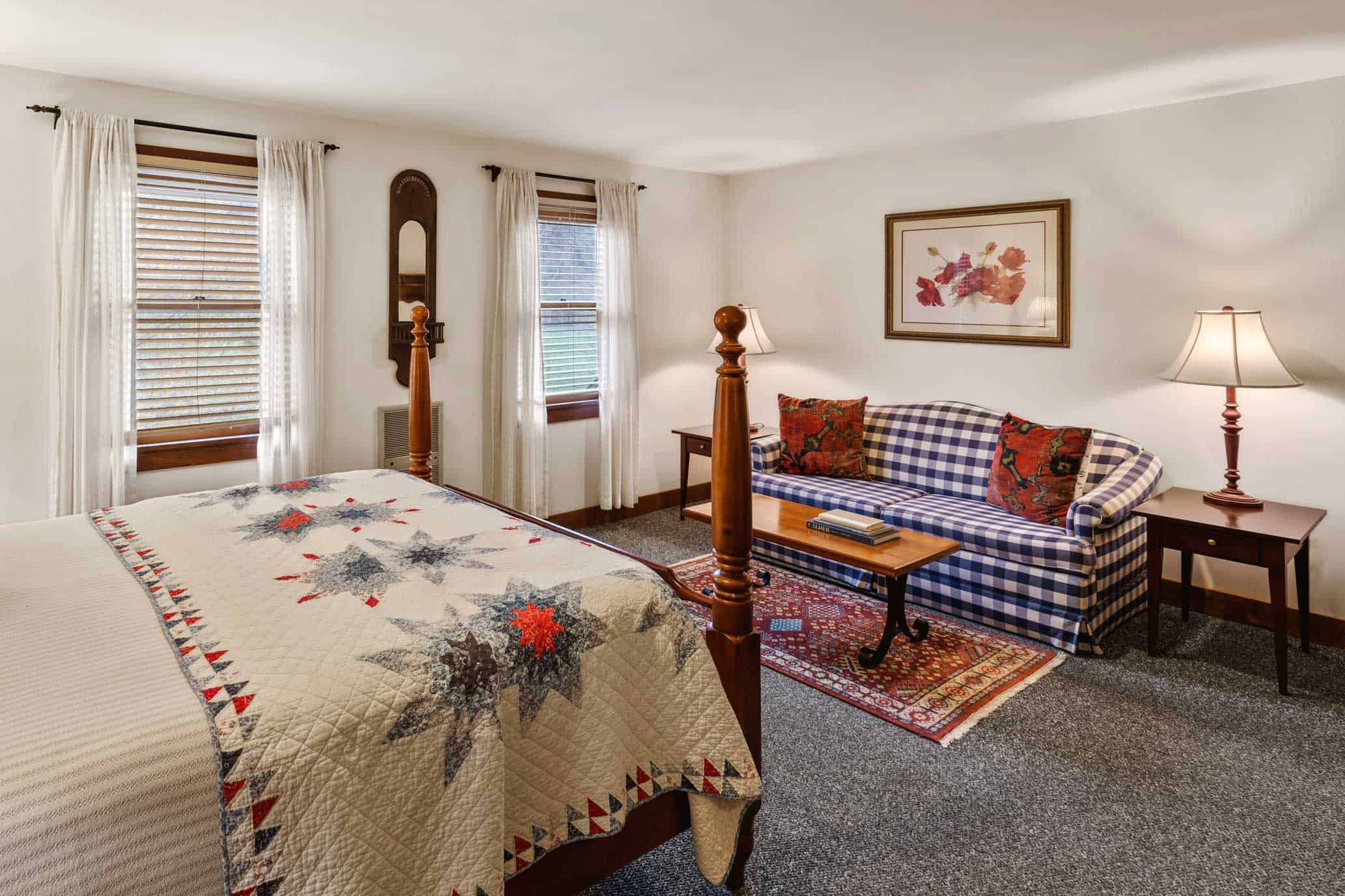 This is where it all began in 1989. The Lodge is centrally located with easy access to The Lewis Mill Restaurant, pavilion, and the river. Our eight lodge rooms are cozy and attractively furnished. The heart of the building is the post and beam gathering room for relaxing and mingling with friends. Paying homage to the property’s farming heritage, there is an attached glazed-tile Silo with a spiral stairway leading to 3 private bedrooms-in-the-round. Every room has a view.