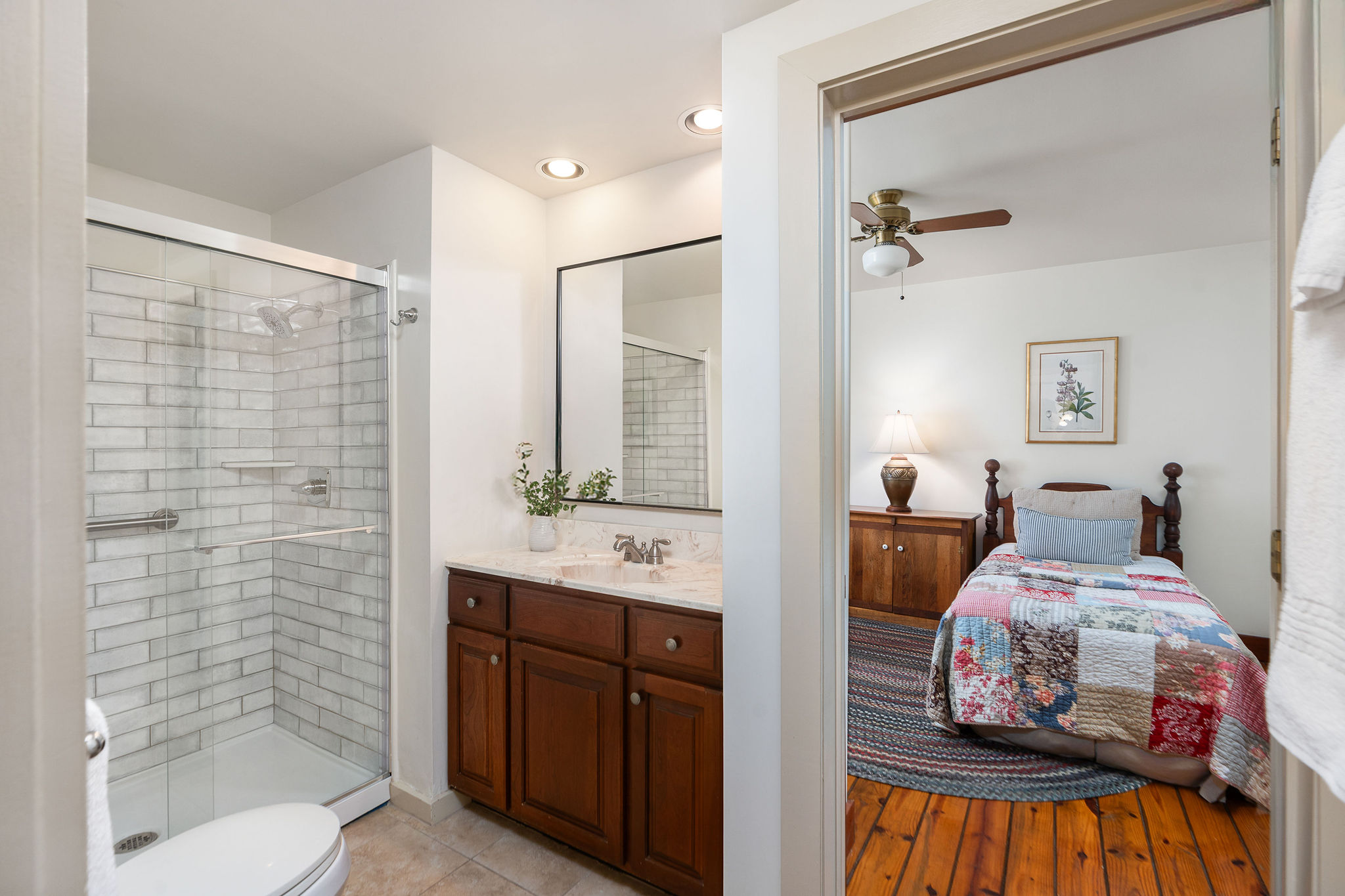 - 2 bedrooms connected by private bath, king size bed in one and twin beds in the other.